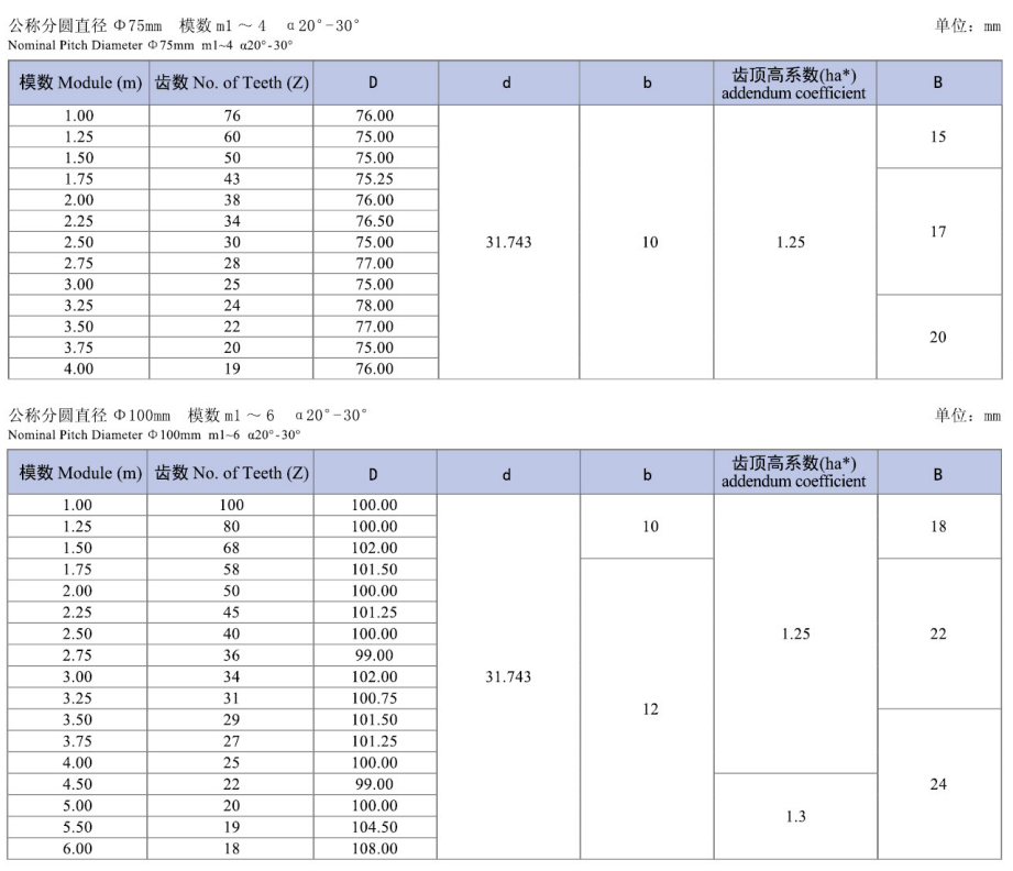 刀具订购参数表